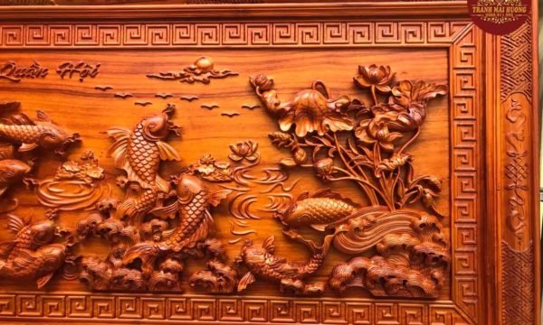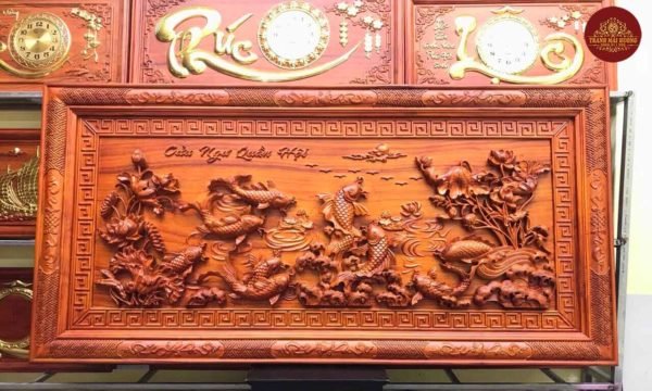 Tranh gỗ cửu ngư quần hội treo phòng khách