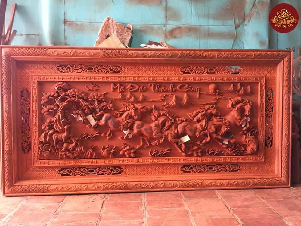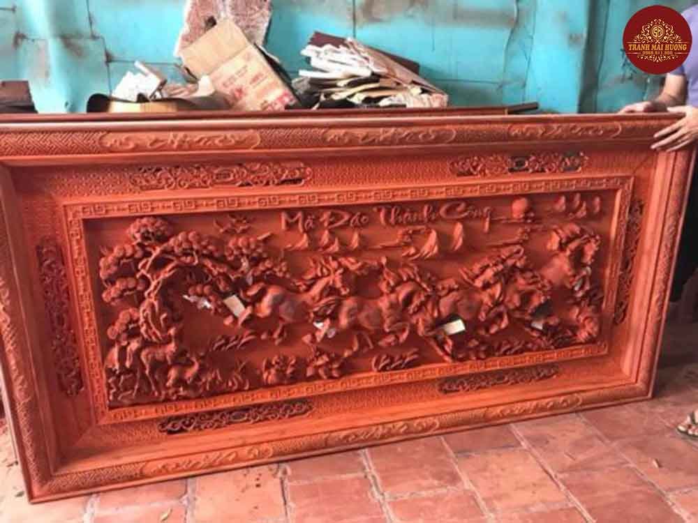 Tranh gỗ vinh quy bái tổ đục dày 10cm